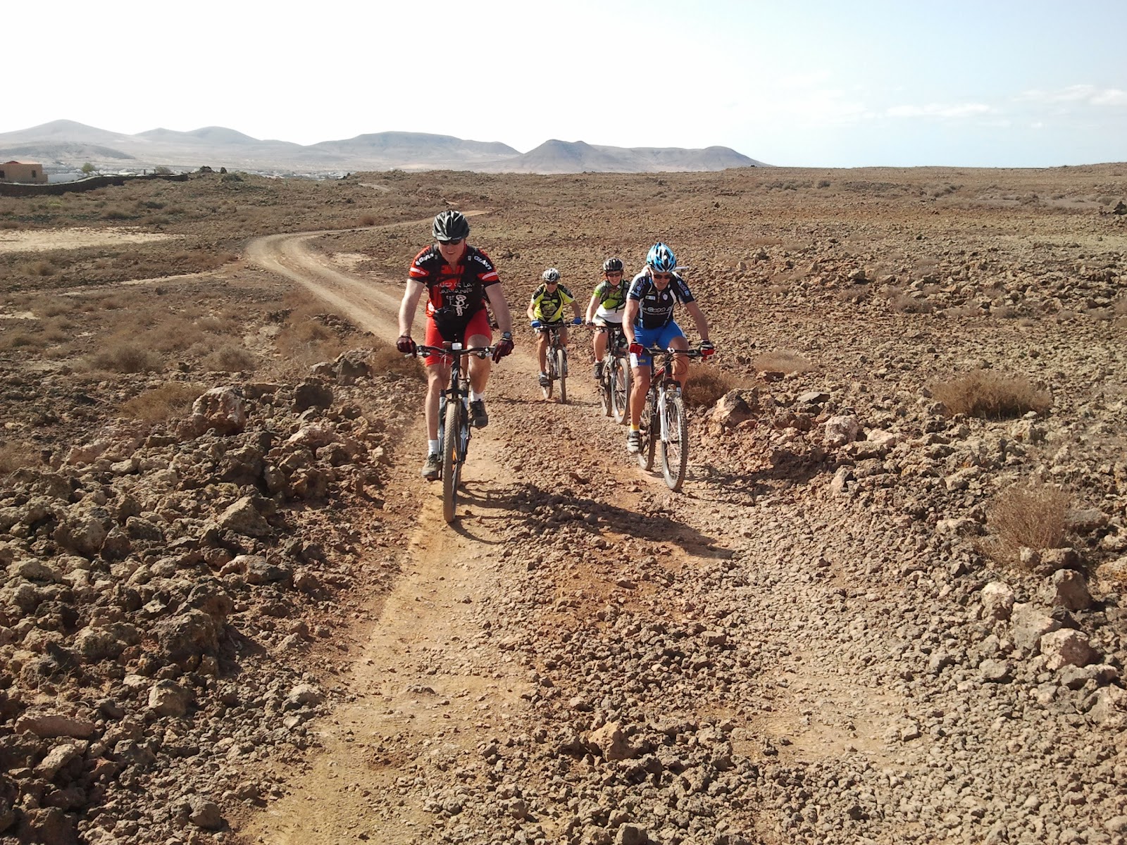 La segona illa de l'arxipèleg canari que visitem pedalant, la més antiga geológicament parlant, al sud oest de Lanzarote, aquest any comencem les nostres roderes amb camp base al nord, a la població de Corralejo. Jacinto, Molero, Cano, Salva, Lluis i la present, prenem un avió a la T2 de Bcn el dia 31 per estar 6 dies recorrent la illa, i tornant sempre al mateix punt de sortida.En total han sortit 330km i +5.000m, terreny volcànic, arenós, àrid, vent, sol , i cops de mar, el paisatge es esfereidor, sense pràctimanet cultiu, aigua o arbres, fa un any que no plou segons ens diuen els autòctons.